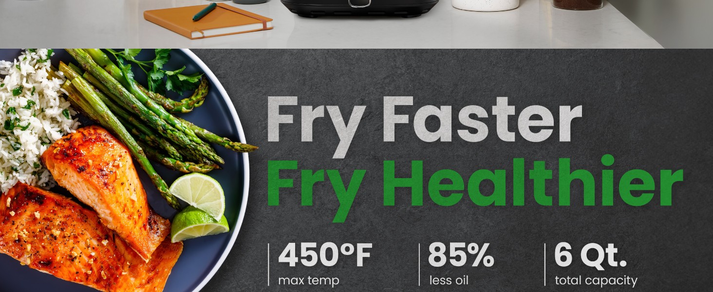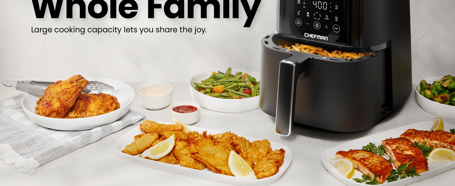Freidora de aire Chefman: 6 cuartos (aprox. 1,8 litros) Freidora de aire compacta para comidas rápid 1100.0 |
