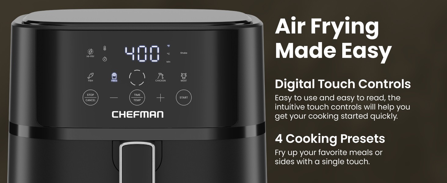 Freidora de aire Chefman: 6 cuartos (aprox. 1,8 litros) Freidora de aire compacta para comidas rápid